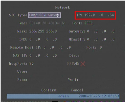 Từ menu chính chọn Network, ta điền các thông số IP, subnet mask, gateway… theo đúng hệ thống mạng tại nơi lắp đặt. |
