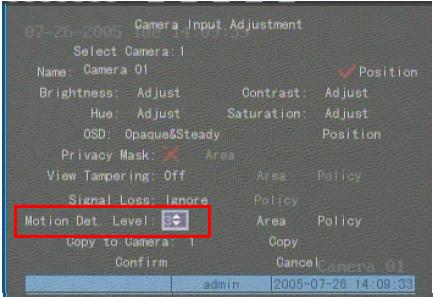 Chọn Image từ menu chính, chọn Camera và chọn Motion detection Sensitivity