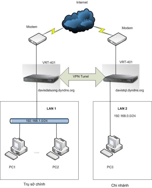 Sử dụng thiết bị VRT-401 thiết lập VPN cho trụ sở chính và chi nhánh lên tới 100 kênh VPN