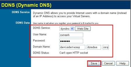 Điền tên account vừa đăng ký trên DynDns.com vào Username /Password