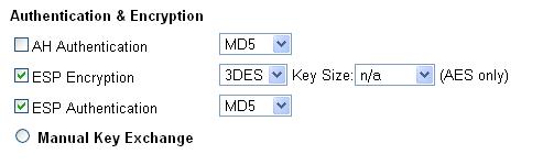 Trong phần này ta chọn tính năng ESP Encryption: 3DES, và tính năng ESP Authentication: MD5 (như hình vẽ)