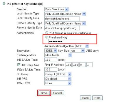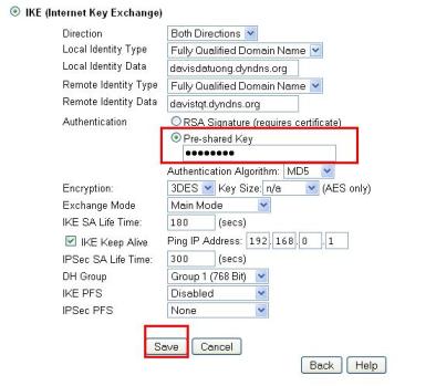 Trong tính năng IKE ta điền key xác thực VPN vào Pre-shared Key của Authentication.