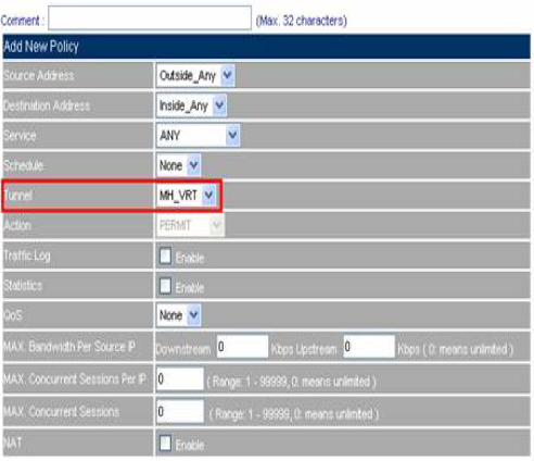 Bước 4: Cấu hình chính sách cho VPN trên MH-2001 như hình bên dưới.