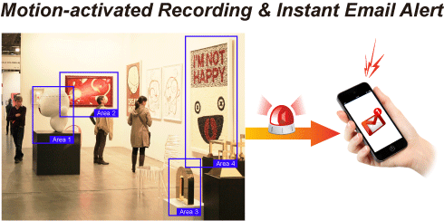Thật dễ dàng để cấu hình tính năng phát hiện chuyển động thông qua cấu hình trên giao diện web của ICA-8200 Người dùng có thể xác định vật thể và các thiết bị chuyển động. ICA-8200 có thể gửi cảnh báo email cảnh báo và chụp hình, và chỉ số camera. Cảnh báo được thực thi theo thời gian thực
