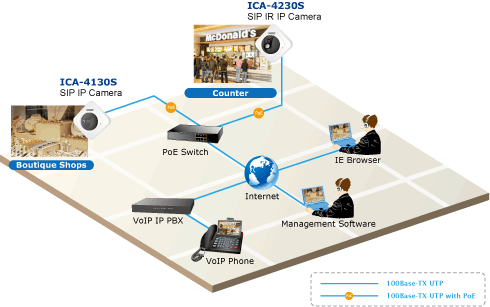 Các tính năng trên ICA-4230S hỗ trợ như SIP/ VoIP cho âm thanh, báo động, gọi điện thoại, hoặc gọi điện thoại bằng hình ảnh. Khi một sự kiện được kích hoạt, người quản trị có thể nhận được báo động, hình ảnh, thậm chí âm thanh thông qua gọi hình ảnh. Bên cạnh đó người quản trị có thể xem xét trạng thái từ xa thông qua thoại hình ảnh tại bất cứ thời gian nào. Với tính năng này ICA-4230S cung cấp tức thời phương pháp phản ứng hiệu quả liên quan đến các sự kiện hoặc ngăn chặn các sự kiện xảy ra và các hoạt động đi cùng với sự kiện (FTP, Email, SD card…)