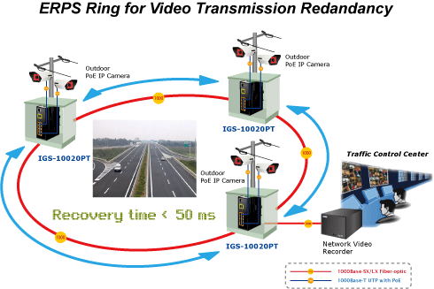 IGS-10020PT hỗ trợ công nghệ dự phòng vòng và các tính năng phục hồi nhanh chóng mạnh mẽ đề ngăn chặn sự gián đoạn và chống xâm nhập từ bên ngoài.Thiết bị hỗ trợ kết hợp công nghệ dự phòng tiên tiến 802.1w RSTP và hỗ trợ nguồn dự phòng để nâng cao độ tin cậy hệ thống và thời gian hoạt động trong môi trường công nghiệp nặng. IGS-10020PT cũng bảo vệ cho kết nối mạng với khả năng phục hồi chuyển mạch để thực thi lỗi vòng và kiến trúc mạng mesh. Khi có vấn đề xảy ra, thời gian phục hồi lỗi nhỏ hơn 50ms sẽ giúp hệ thống mạng nhanh chóng quay trở lại bình thường