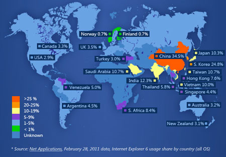 Thị phần của IE6 tại các nước đang được đếm ngược để đến ngày "về đích".