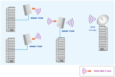 Thiết bị WNAP-7200 hỗ trợ những tính năng chuẩn WISP cho người dùng đầu cuối CPE dễ dàng kết nối truy cập Internet thông qua các nhà cung cấp dịch vụ WISP hoặc thông qua hệ thống mạng có dây. Thiết bị cũng hỗ trợ tính năng định tuyến và hỗ trợ nhiều chế độ hoạt động không dây như AP, AP Client và WDS để đáp ứng những nhu cầu triển khai hệ thống mạng không dây khác nhau. Thiết bị WNAP-7200 là một là lựa chọn tốt nhất để xây dựng hệ thống mạng không dây ngoài trời cho việc truy cập giữa các tòa nhà như mạng trường học, các khu vực doanh nghiệp và các khu vực nông thôn.