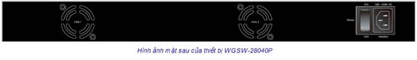 Phụ kiện kèm theo của WGSW-28040P gồm có: cáp nguồn, cáp kết nối cổng Console và sách hướng dẫn cài đặt. Ngoài ra sản phẩm đóng gói còn kèm theo hai giá đỡ rack-mount cùng với ốc vít để gắn vào 2 bên của switch, giúp cho switch có thể lắp vào rack tiêu chuẩn 19 inch. Bốn chân đế cao su để gắn vào bốn vùng lõm bên dưới switch quản lý, giúp cho thiết bị có thể được đặt trên một mặt phẳng nằm ngang.