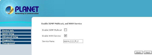 Bước 5: Tại đây bạn Enble WAN Service và nhấn Next như hình bên: