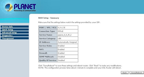 Bước 2: Chọn tab Quick Setup đây bạn nhập vào 2 tham số là VPI/VCI của nhà cung cấp dịch vụ(trong ví dụ này chúng tôi điền 0-35 vì tôi đang dùng mạng của VNN). Sau khi điền xong bạn nhấn Next để tiếp tục công việc.