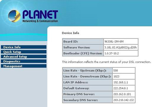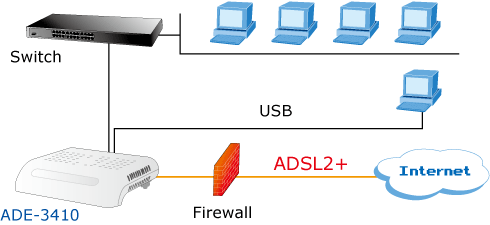 Sử dụng ADE-3410v2 của Planet. Đây là modem ADSL/ADSL 2+ cho phép kết nối internet tốc độ cao. Tính năng nâng cao của sản phẩm cho phép chia sẻ thiết bị ra ngoài internet.