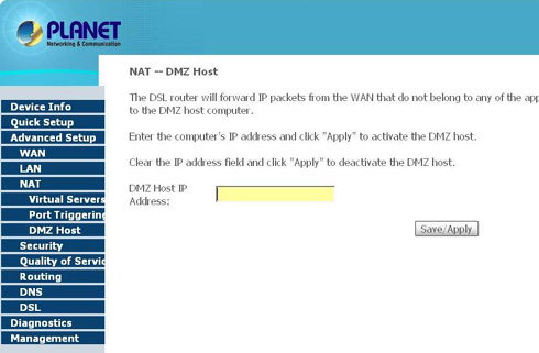 Bước 3: Điền địa chỉ IP của thiết bị bạn muốn chia sẻ vào DMZ Host IP Address. Ấn Save/Apply để lưu cấu hình.