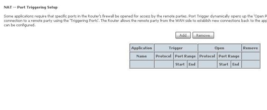 Bước 3: Chọn Add để cài đặt dịch vụ Port triggering mới
