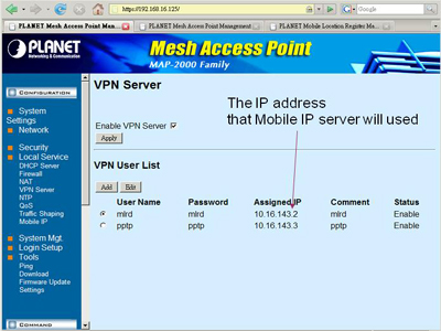 Kích hoạt và đăng ký IP cho Mobile IP server (MAP-2105) |