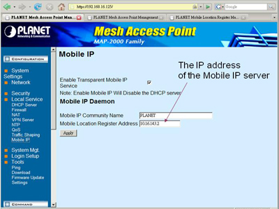 Hình 4: Cấu hình Mobile IP MAP-2105 |