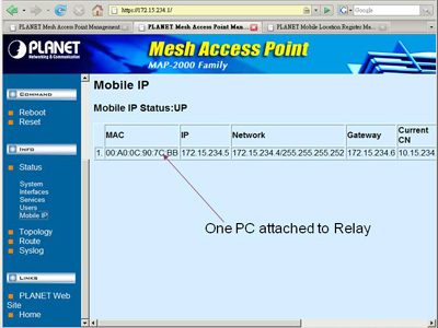 Hình bên dưới thể hiện một máy tính kết nối vào mạng MESH do MAP-2100 Relay quản lý kết nối. |