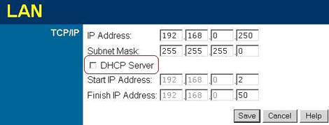 Trong cấu hình web của WRT-414. Chọn từ Menu chính LAN và bỏ DHCP.