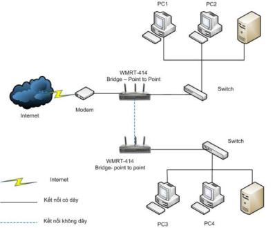 Trong bài hướng dẫn này chúng tôi hướng dẫn các bạn cài đặt nhanh một hệ thống kết nối 2 mạng LAN bằng 2 thiết bị WMRT-414 để ở chế độ Bridge.