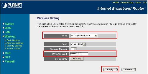 Bước 4: Cấu hình tính năng Brigde- Point to point cho WMRT-414 ở mạng LAN thứ 2