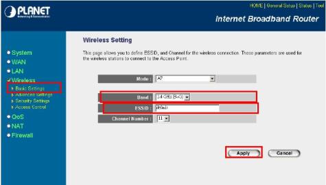 Channel Number: Chọn kênh phát cho mạng Wireless (chẳng hạn trong hình vẽ trên ta chọn channel 11)