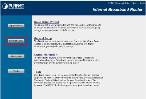 Trên giao diện Web Browser của thiết bị chọn General Setup