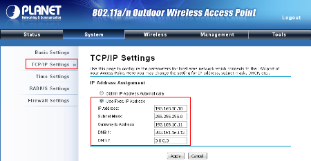 Gateway: 192.168.10.11 địa chỉ của AP ở phía đối diện cùng hoạt động trong chế độ Bridge