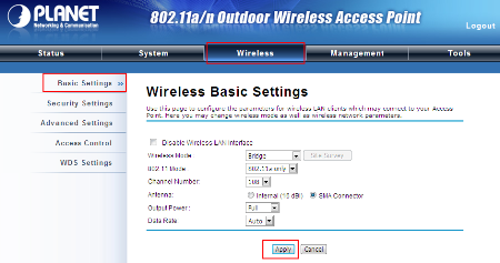 Bước 3: Từ giao diện chính chọn Wireless à Basic Setting.