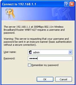 Trước tiên để vào được giao diện cấu hình thiết bị, mở trình duyệt web rồi gõ địa chỉ http://192.168.1.1, sau đó một màn hình đăng nhập xuất hiện nhập User Name và Password là admin/admin rồi nhấn nút OK