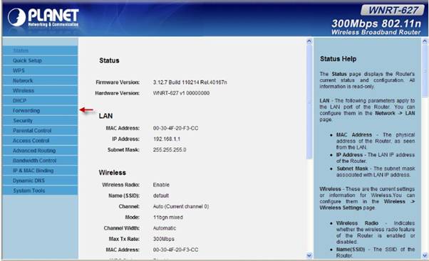 Trong bài hướng dẫn thiết lập cấu hình thiết bị để Remote máy tính từ xa (Các bước hướng dẫn dưới đây sẽ sử dụng thiết bị của Planet WNRT-627 làm tiêu mẫu để hướng dẫn, bạn có thể thay thế WNRT-627 bằng thiết bị Router bất kì (có hỗ trợ chức năng Virtual Servers hay Port Forwarding).