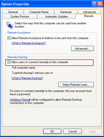 Lưu ý: Trước khi thực hiện Remote bạn phải kích hoạt tính năng Remote Desktop trong System Properties, để cho phép các máy tính khác có thể điều khiển máy tính của mình từ trong hay ngoài mạng LAN.