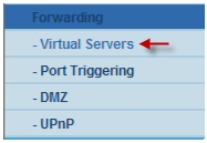 Một menu nhỏ khác hiện ra trong phần Forwarding, chọn Virtual Servers