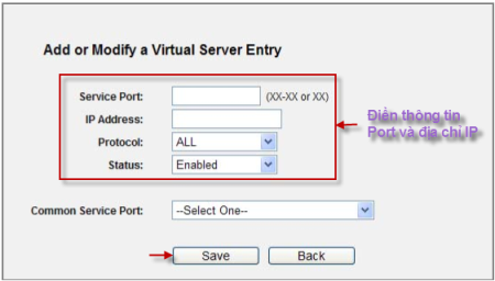 Service Port: Chọn port của dịch vụ trong mạng nội bộ cần đưa lên web. Ví dụ ta điền là 3389 (đây là port mặc định của Windows khi dùng tính năng Remote Desktop)