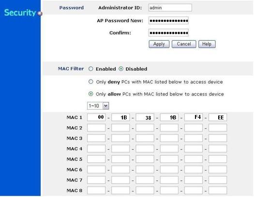 Sử dụng thiết bị WAP-4000A của Planet đặt ở chế độ AP mode. Tính năng lọc MAC của WAP-4000A cho phép quản lý truy cập của các máy trạm bằng địa chỉ MAC.