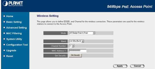 Bước 3: Chọn chế độ là AP Bridge Point to Point. Màn hình giao diện như sau:
