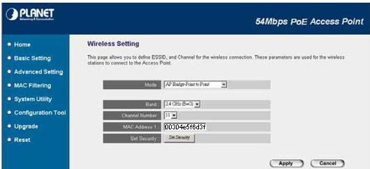 Bước 4: Cấu hình thiết bị WAP-4000A ở đầu mạng LAN thứ hai giống hệt ở đầu thứ nhất. (nhưng add địa chỉ MAC của thiết bị ở đầu mạng LAN thứ nhất vào trong thiết bị WAP-4000A thứ hai).