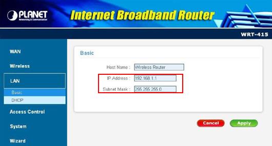 Tiếp theo bạn chọn LAN->Basic. Ở đây bạn có thể đổi lại địa chỉ IP cho WRT-415