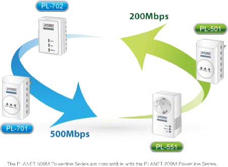 • Tương thích ngược với HomePlug AV (200Mbps) bao gồm sản phẩm PLANET Powerline