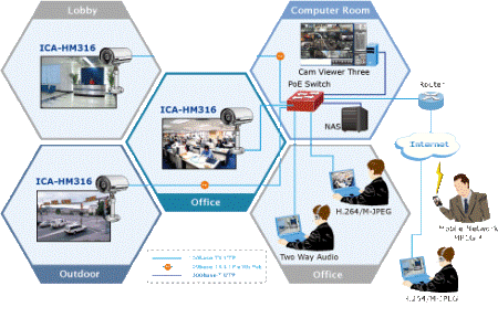 Tính năng Multi-Profile cho phép ICA-HM316 cùng một lúc tạo ra nhiều đường truyền H.264 / MPEG-4 / M-JPEG để phân biệt các người dùng ở độ phân giải khác nhau. Thiết kế mang tính thẩm mỹ là đáng kể trong việc thích ứng với các môi trường mạng khác nhau. ICA-HM316 cung cấp tính năng 2-Way audio nhằm mục đích giám sát. Ta có thể nói chuyện từ xa với bất kỳ ai ở phía bên kia của ICA-HM316 với thiết bị loa ngoài kết nối tới camera.