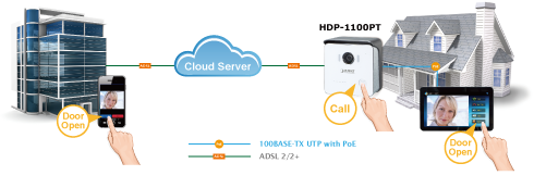 Chức năng liên lạc hai chiều từ HDP-1100PT cho phép nói chuyện với khách và giao tiếp nói chuyện. HDP-1100PT hỗ trợ đầu kỹ thuật số vào ra cho kết nối với khóa cửa hoặc cảm biến cửa. Kh khách nhấn nút, có thể điều khiển mở cửa trên thiết bị di động hoặc trên Planet HTS-1100P điều khiển màn hình cảm ứng mở cửa