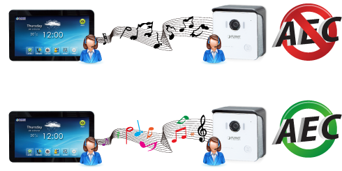 Công nghệ giảm tiếng vọng cho phép thiết bị chuông cửa door phone HDP-1100PT và màn hình cảm ứng HTS-1000P có thể nén chất lượng âm thanh để mang đến chất lượng tốt nhất
