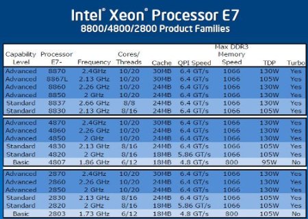 Hiểu được những yêu cầu của các ứng dụng đòi hỏi khả năng tính toán cao như mô hình hóa khí hậu, phân tích kinh doanh thời gian thực…, Intel đã đưa ra 10 phiên bản 10 nhân tiên tiến cho con chip này, dẫn đầu là E7-8870, E7-4870 và E7-2870, tất cả đều đạt 2,4GHz với công suất tiêu thụ tối đa (TDP) là 130W.