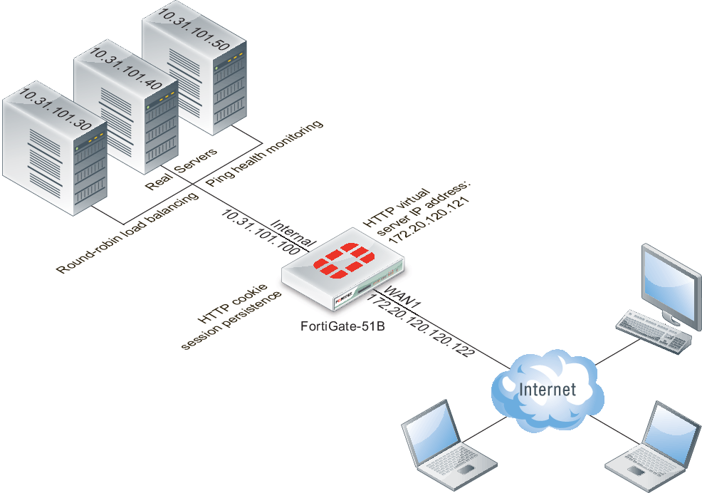 Theo những quy trình thông thường thì người dùng sẽ gửi những yêu cầu lên hệ thống, bộ cân bằng tải Link Load Balancing sẽ xử lý dữ liệu đó, sau đó sẽ chuyển những thông tin này đến các máy chủ bên trong. Việc hỗ trợ cũng như trả lời những yêu cầu của khách hàng tất nhiên cũng sẽ thông qua bộ cân bằng tải, vì vậy người ta sẽ không thể biết được cách phân phối tài nguyên bên trong máy chủ. Có thể ngăn chặn được việc giao tiếp trực tiếp với các máy chủ, ẩn thông tin và câu trúc mạng nội bộ. Bên cạnh đó Link Load Balancing Fortigate ngăn ngừa được các cuộc tấn công mạng hoặc các mã độc đang hoành hành gần đây.