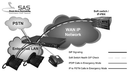 Với các giải pháp truyền thông hợp nhất, nhiều chi nhánh và IP-Centrex, tính năng SAS (Stand Alone Survivability) cho phép duy trì dịch vụ thoại cơ bản (Gọi vào/ra, chuyển máy, đàm thoại 3 bên) cho các đầu cuối SIP (SIP client) như điện thoại IP, phần mềm gọi điện thoại IP tại các chi nhánh trong trường hợp mạng hay tổng đài IP gặp sự cố.