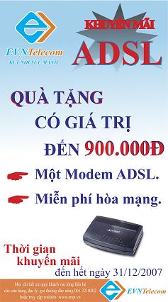 Bắt đầu tháng 11 năm 2007, Trung tâm Viễn Thông và CNTT- Điện Lực Đồng Nai tiếp tục thực hiện chương trình khuyến mãi “miễn phí dịch vụ lắp đặt và tặng modem ADSL”...